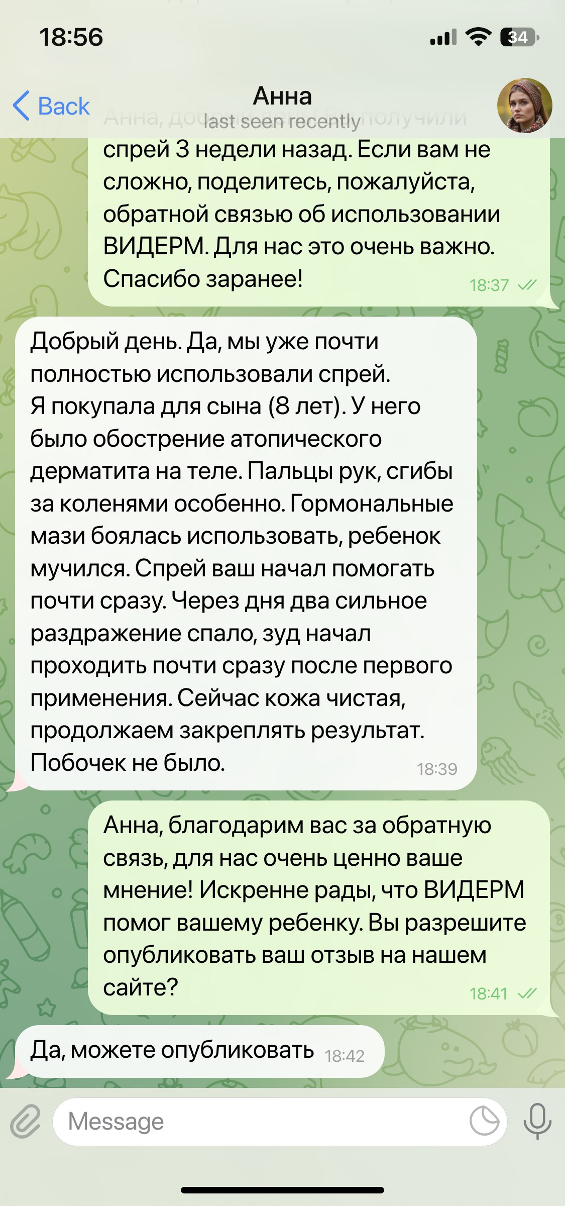 Благодаря натуральному составу ВИДЕРМ имеет высокий профиль безопасности. Однако, индивидуальная непереносимость может возникать у некоторых людей и на растения, поэтом обязательно проведите тест на небольшом участке кожи перед первым применением. При появлении сильного раздражения прекратите использование.